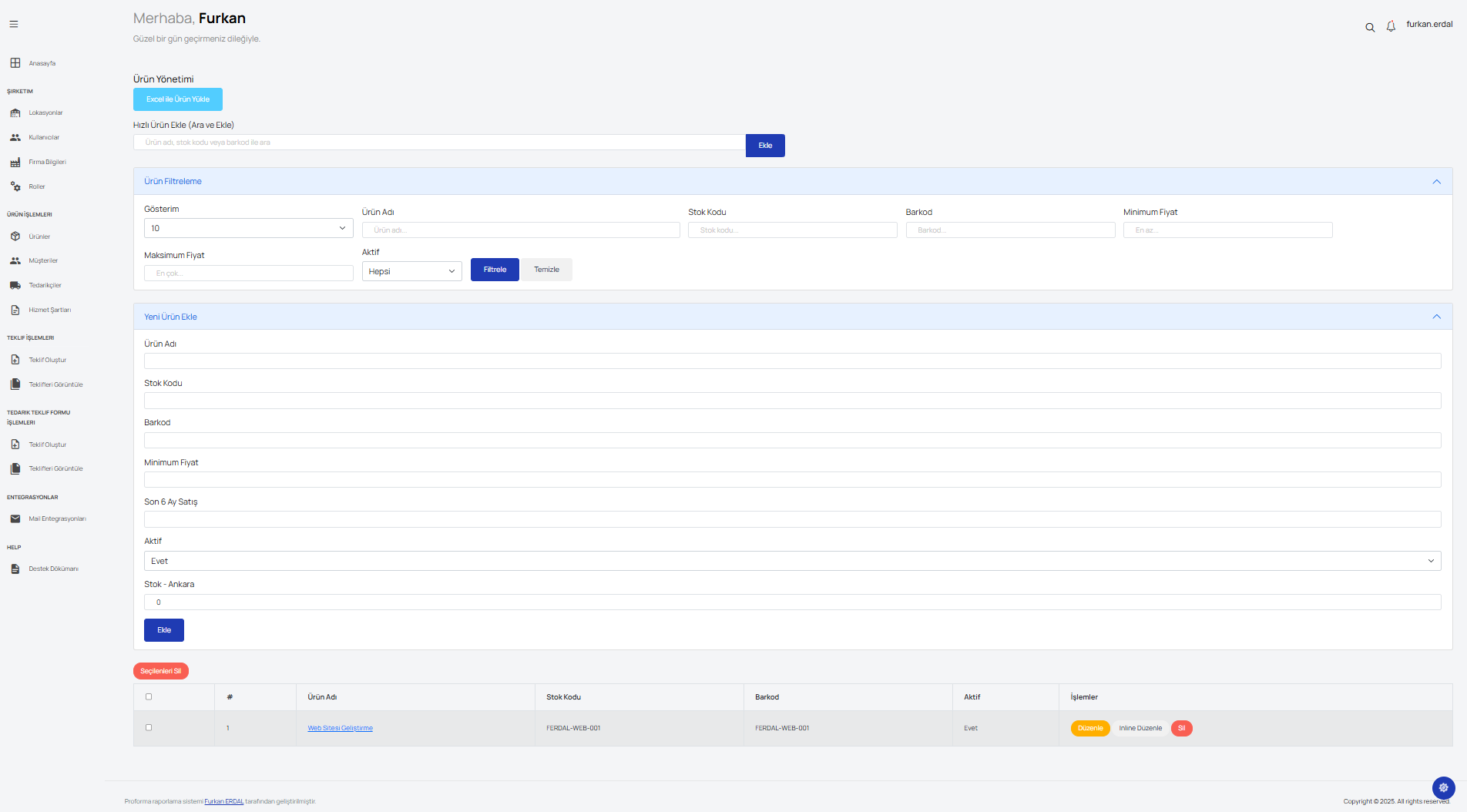 Bu yapı, ileride fatura ve sipariş modüllerine dönüşebilecek esnekliği sağlar.