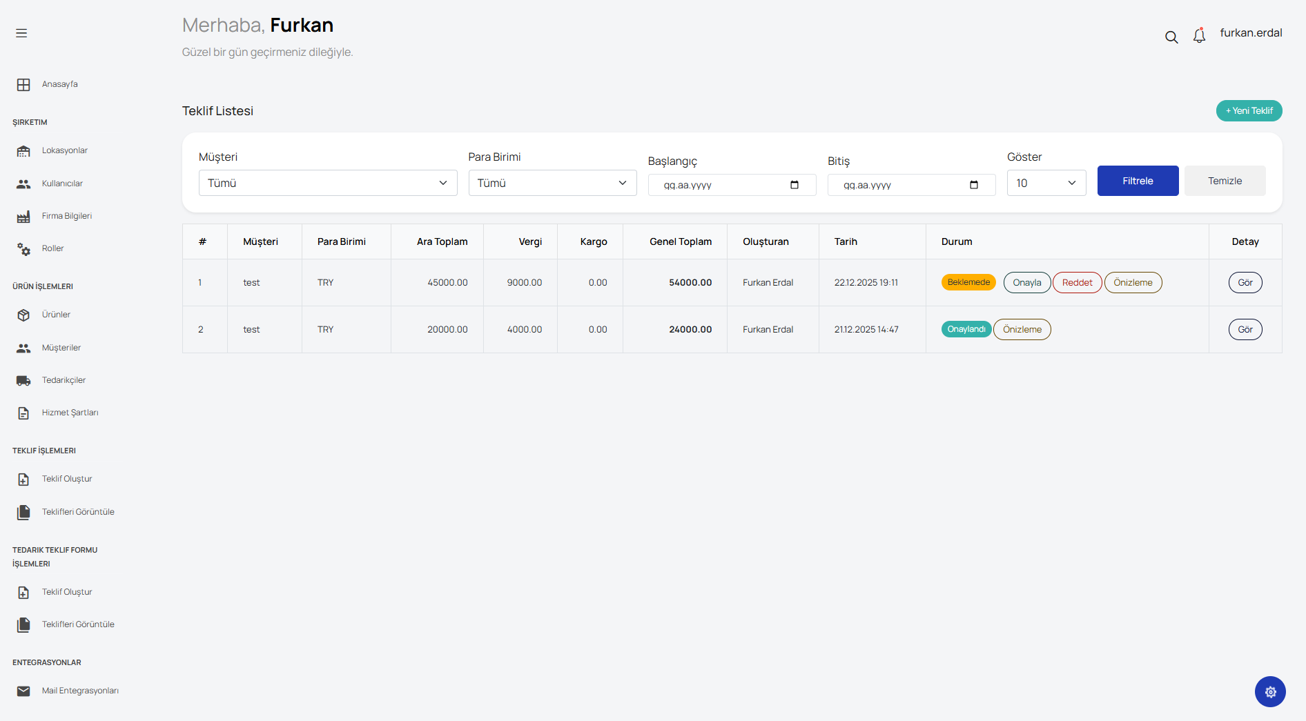 Bir Teklif ve Proforma Yönetim Platformunun Uçtan Uca Yolculuğu